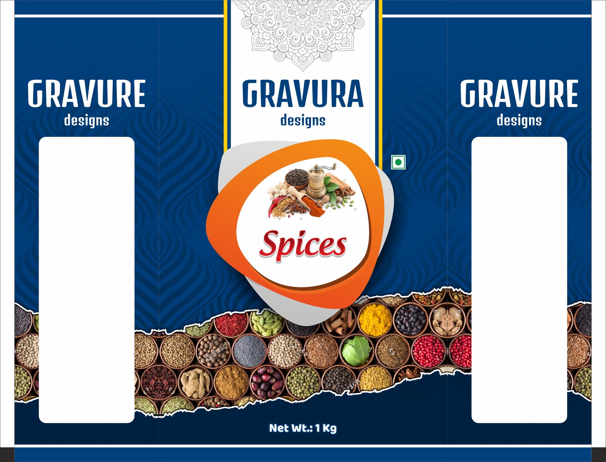 A sophisticated blue and orange packaging design with a premium spice collage and clean center badge. The combination of deep tones and modern layout gives a refined, export-ready look. Fully editable and print-ready for gravure or digital printing.