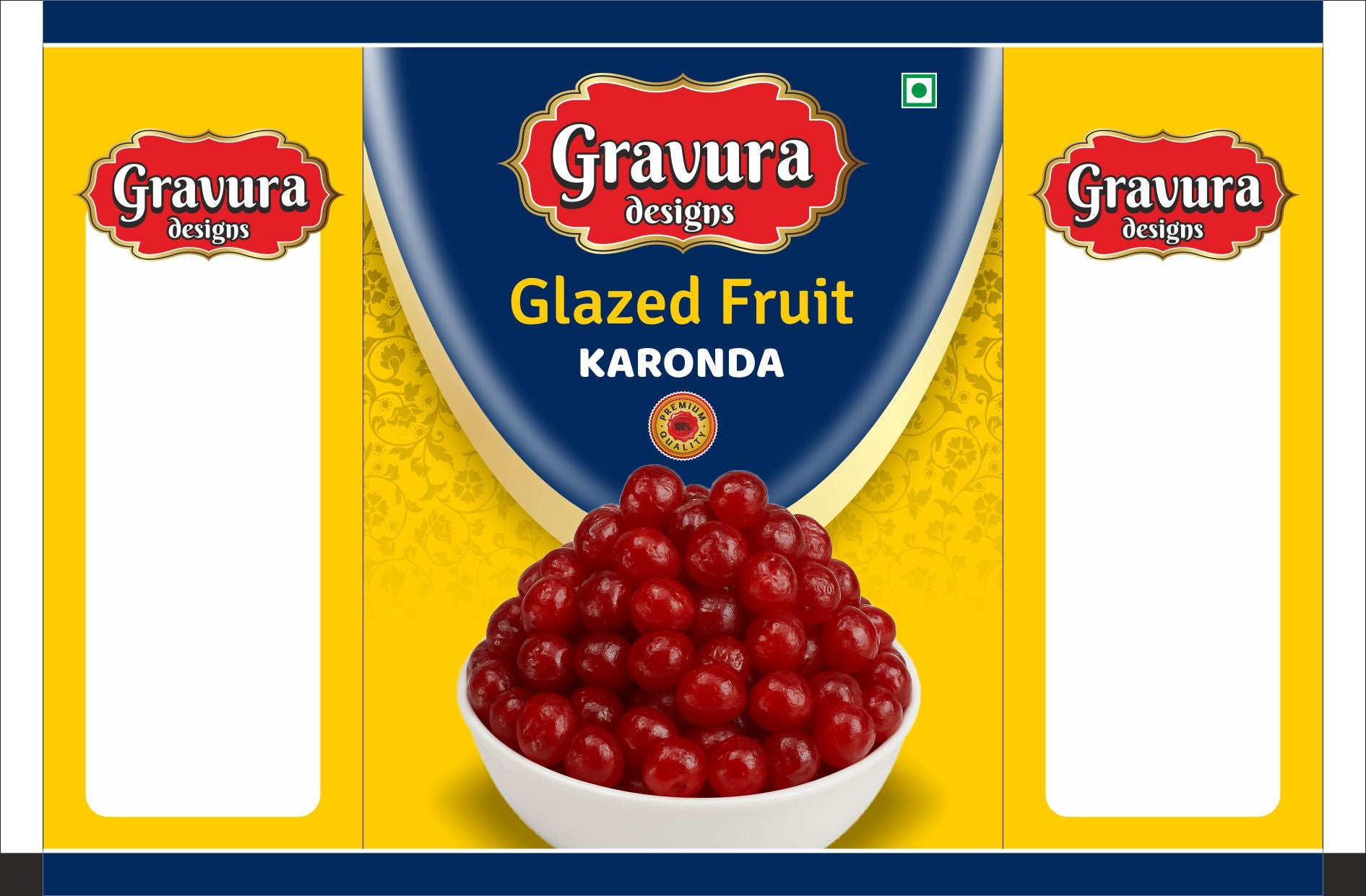 This packaging design features a premium blue and yellow color palette that conveys richness and quality. The bold central arch layout frames the product imagery, drawing the eye to the vibrant visuals and clear typography. Decorative background detailing adds refinement without overwhelming the design. Fully editable in .cdr and .pdf formats, this gravure packaging template provides a polished, professional aesthetic perfect for brands seeking a premium look. Its versatile structure allows seamless adaptation for various glazed, candied, or fruit-based product lines.