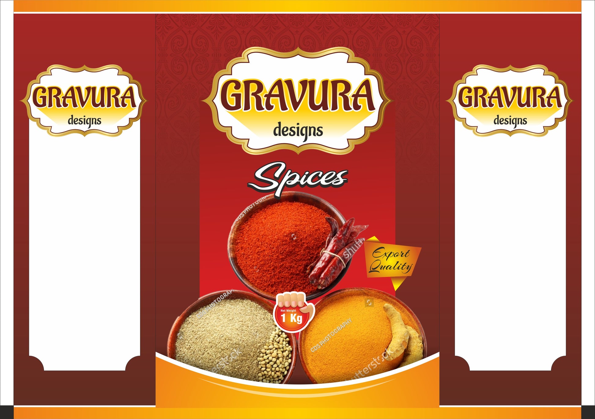 A bold red and golden packaging design crafted to showcase spice blends with export-quality appeal. The curved layout and elegant gradient add warmth and richness, making it ideal for spice or seasoning brands. Fully editable and print-ready for gravure or digital printing.